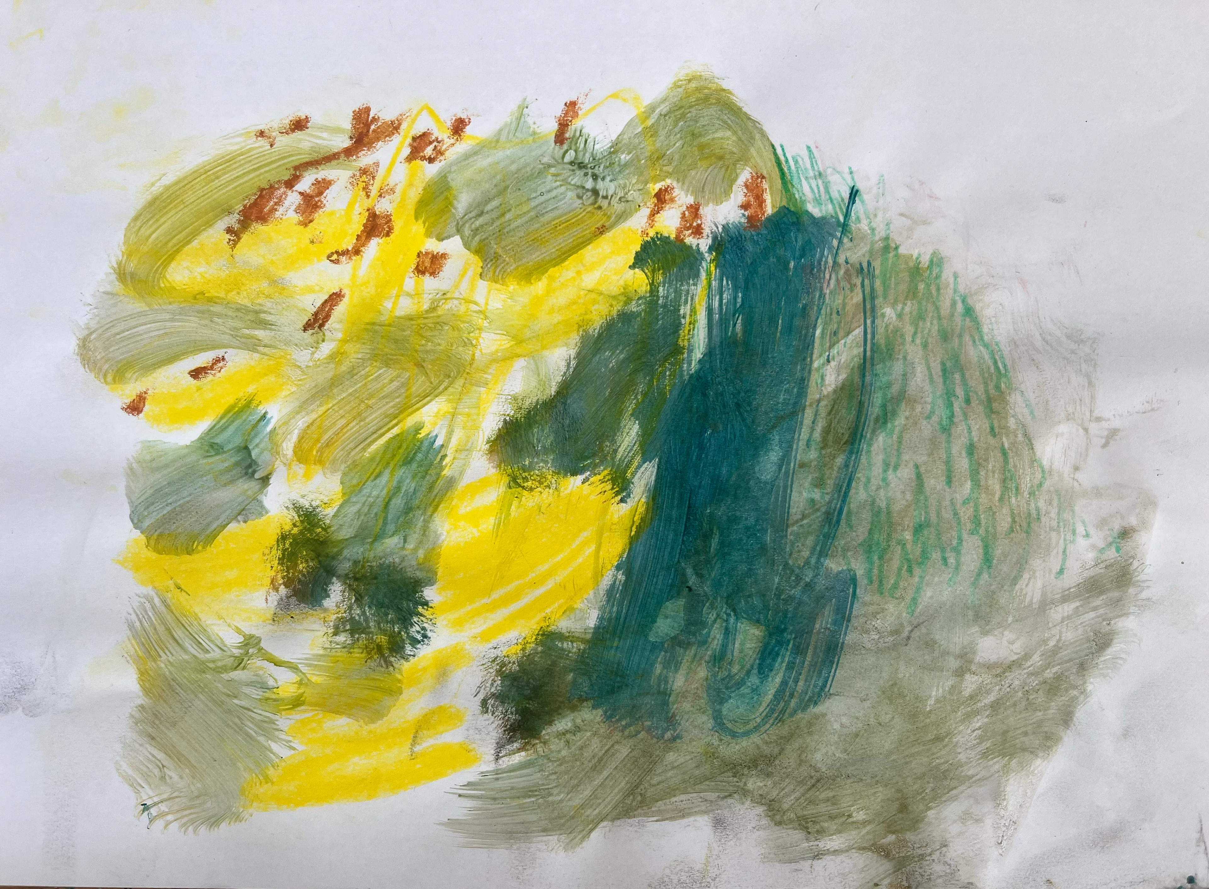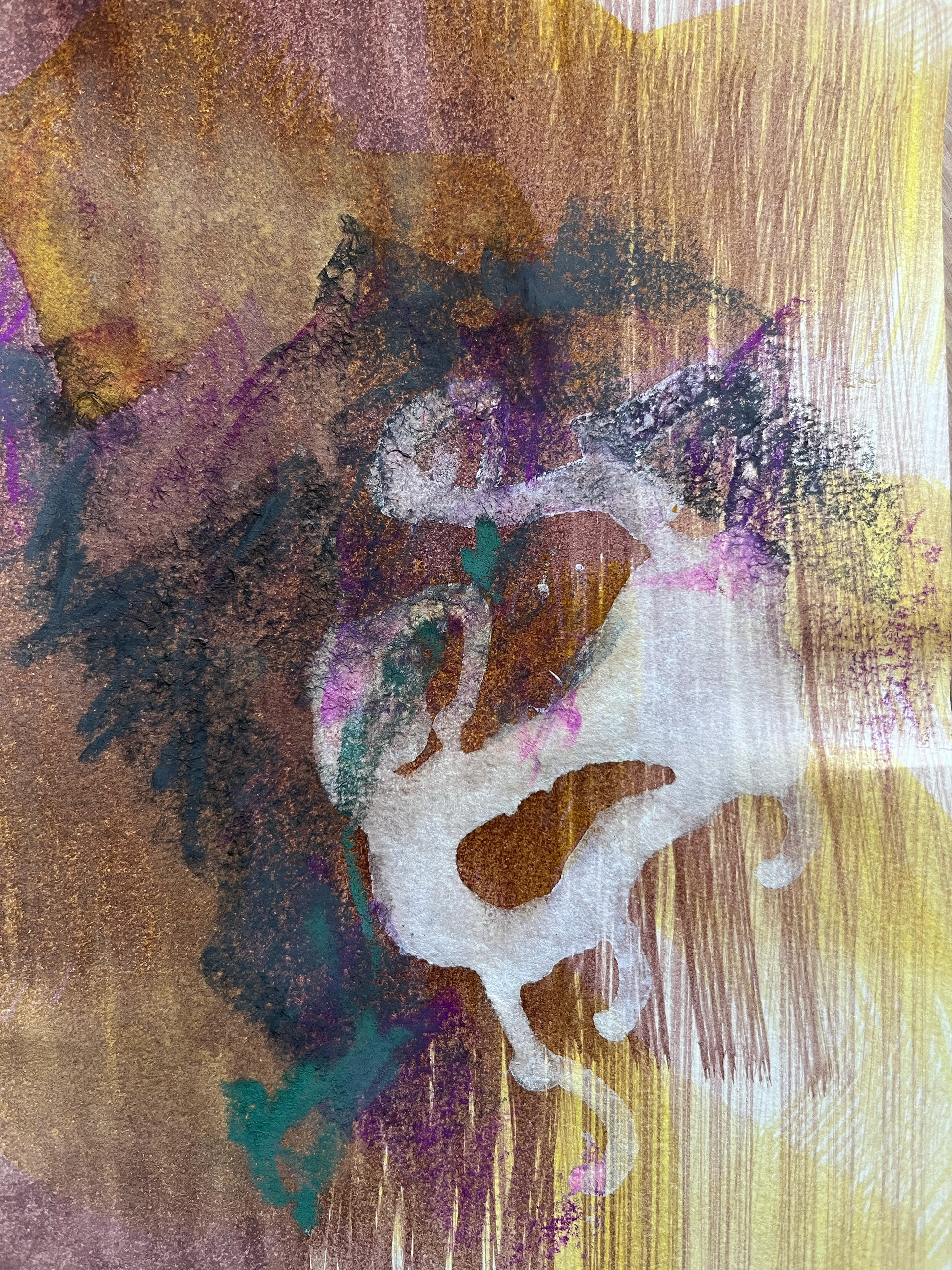 "o.T.", 2025, Wasserfarbe und Ölkreide auf Papier, 29,5x20,7cm