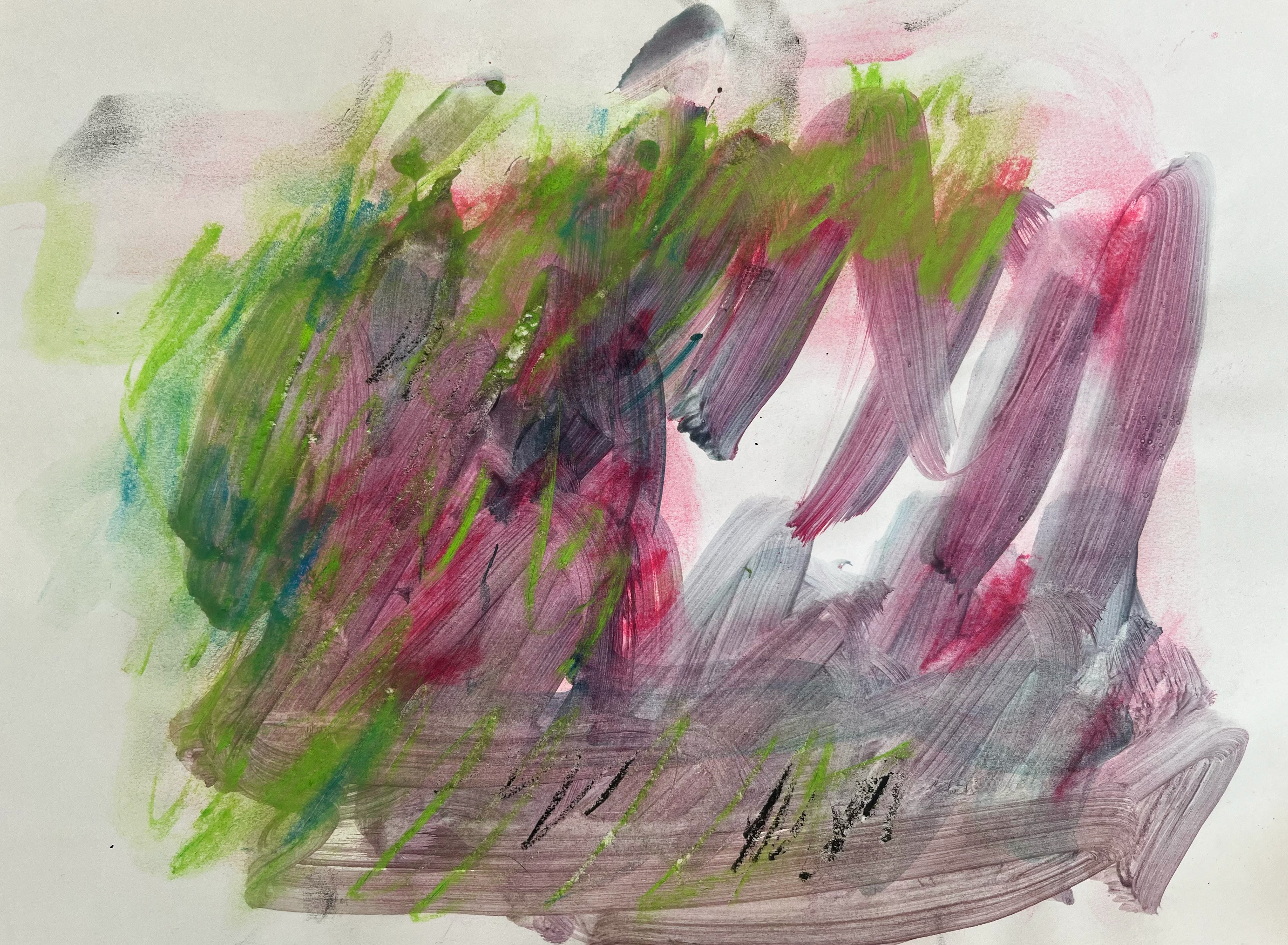2024, Acryl, Tusche, Pigment und Ölkreide auf Papier, 59x83,5cm