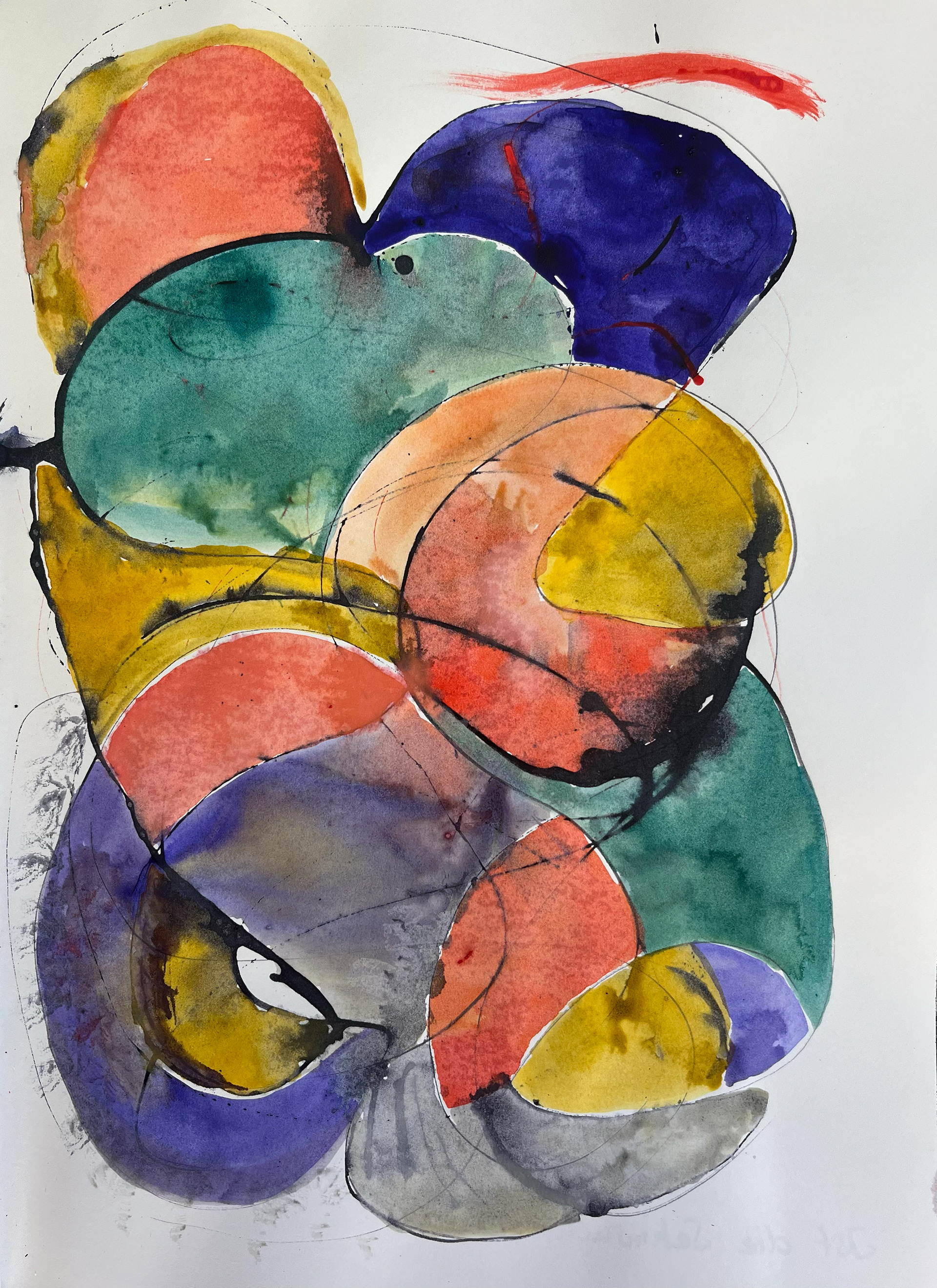 2022, Acryl, Tusche und Ölkreide auf Papier, 59x83,5cm